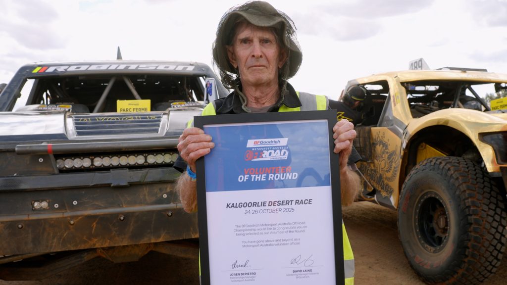 Following another successful scrutineering stint at the Black Diamond Drilling Kalgoorlie Desert Race last month, Alister Colley has deservingly received the final BFGoodrich Volunteer of the Round Award for 2025 while also announcing he would also be stepping down from his post from next year.