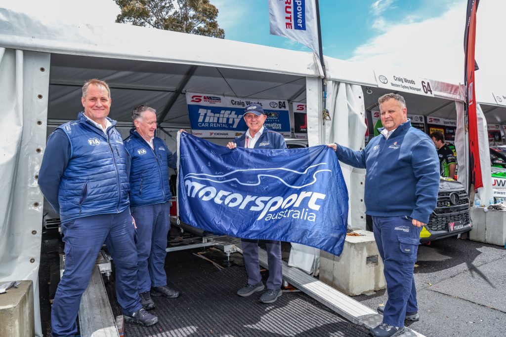 As part of Slana’s departure, he was presented with a signed Motorsport Australia flag from SuperUtes Race Directors David Stuart, David Mori and James Taylor and was honoured with a Recognition of Service Award at the end of year V8 SuperUtes Awards Night.