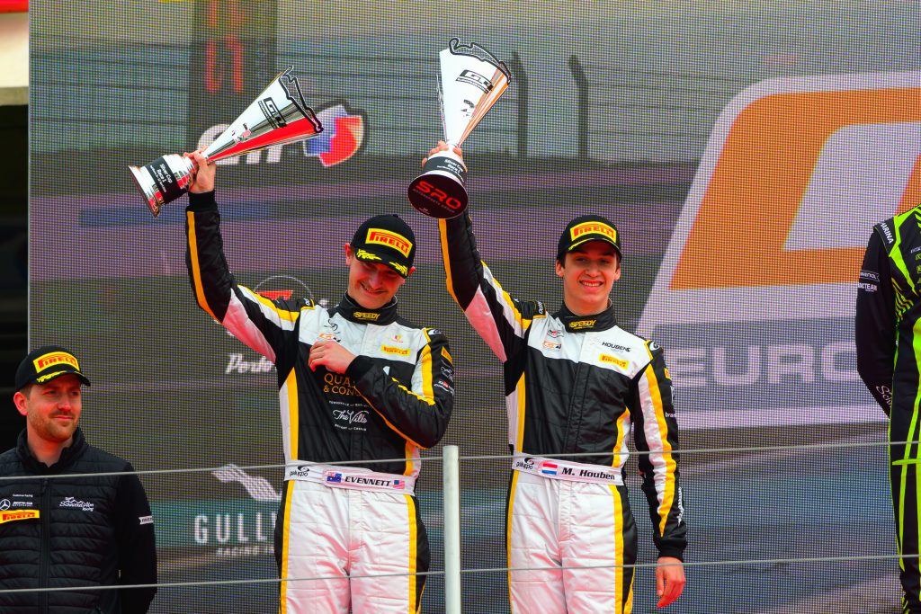 Lachlan Evennett has podiumed in his Pro class debut in Race 1 of the European GT4 Series at Circuit Paul Ricard.